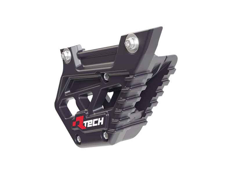 Chain guide made of modified technopolymer to resist impact. Designed for easy installation without the need to remove the chain. Chain guide included. Fixing kit included.